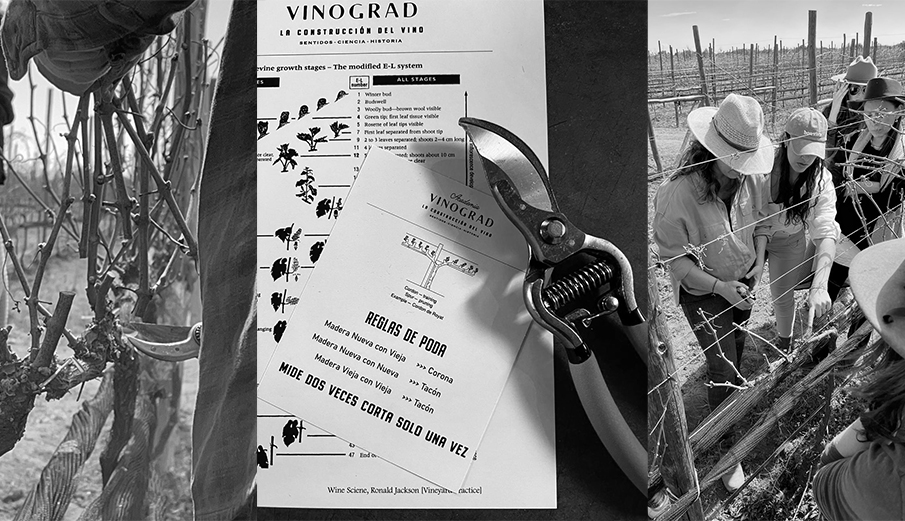 Actividad de poda guiada por Branko Pjanic, consultor en viticultura regenerativa. Ecólogo y Biólogo de Bosnia Herzegovina. Cuenta con estudios en poda con el grupo de Marco Simonit . Taller impartido por Natalia López, creadora de este contenido.