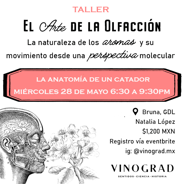 El vino es un gran pretexto para aprender un poco de ciencia, de nosotros mismos y de la vida. Este es un taller diseñado para profesionales del mundo del vino, catadores o cualquier curioso en el tema buscando profundizar sobre la anatomía del sentido del olfato y sobre cómo están los aromas organizados en la naturaleza.